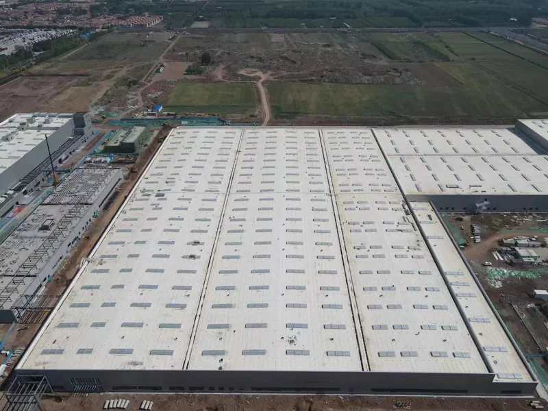बड़े-स्पैन स्टील स्ट्रक्चर सैंडविच पैनल वॉल सिस्टम एक कुशल और एकीकृत संलग्नक समाधान है। यह प्रणाली अंदर और बाहर धातु पैनलों की दो परतों से बना है, बीच में एक इन्सुलेट कोर सामग्री के साथ, एक निरंतर रोल-गठन प्रक्रिया के माध्यम से गठित किया जाता है। यह एक दीवार इकाई बनाता है जो शक्ति, इन्सुलेशन और सजावटी कार्यों को जोड़ती है। केवल 15-25 किलोग्राम/वर्गमीटर के आत्म-वजन के साथ, यह मुख्य संरचना पर लोड को काफी कम कर देता है, जिससे यह विशेष रूप से बड़े-स्पैन भवनों की सख्त हल्के आवश्यकताओं के लिए उपयुक्त हो जाता है। यह दीवार प्रणाली अत्यधिक उच्च स्थापना दक्षता और अनुकूलन योग्य सतह रंग और बनावट प्रदान करती है, जो बड़े वाणिज्यिक परिसरों में एक आधुनिक और सरल मुखौटा के निर्माण की अनुमति देती है। इसके अतिरिक्त, इसका थर्मल ब्रिज रुकावट डिजाइन इमारत के समग्र गर्मी हस्तांतरण गुणांक को कम करता है, ऊर्जा दक्षता को बढ़ाता है।