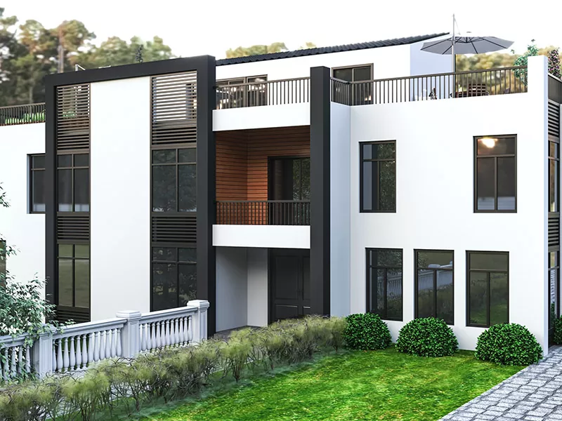 ● ऊर्जा दक्षता: विला हाउस को ऊर्जा-बचत सुविधाओं जैसे कि इंसुलेटेड दीवारों और छतों, ऊर्जा-कुशल खिड़कियों और सौर पैनल एकीकरण विकल्पों के साथ डिज़ाइन किया गया है, जो ऊर्जा की खपत और उपयोगिता बिल को कम करता है।