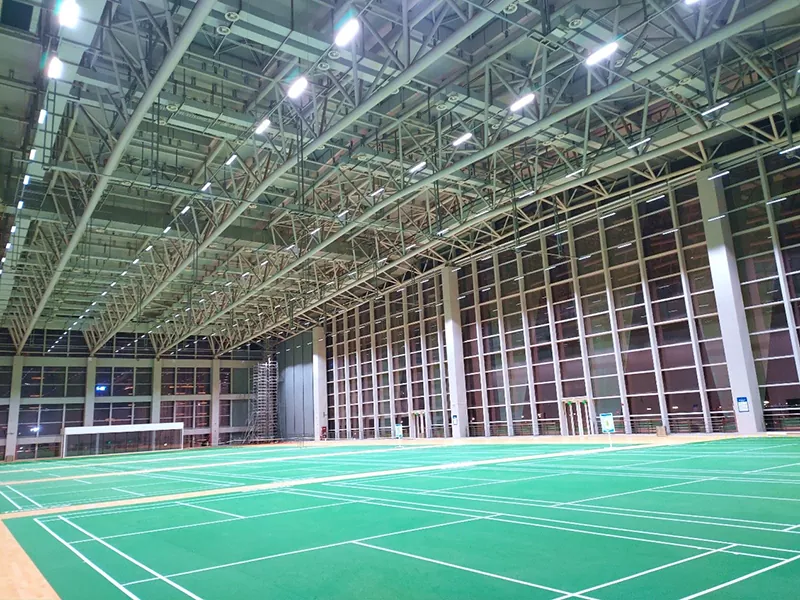 बड़े-स्पैन स्तंभ-मुक्त स्थान: पारंपरिक कंक्रीट संरचना वाली इमारतों की तुलना में, स्टील संरचना वाले बैडमिंटन हॉल में आयोजन स्थल के अंदर के दृश्य को अवरुद्ध करने वाले कोई स्तंभ नहीं हो सकते हैं, जो आयोजन स्थल के स्थान को काफी हद तक बचाता है और दर्शकों के लिए बेहतर देखने का अनुभव भी प्रदान करता है।