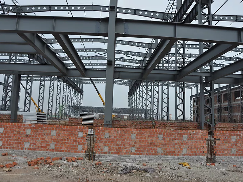 स्टील फ्रेम, जो गोदाम की संरचनात्मक बैकबोन बनाते हैं, स्थायित्व और स्थिरता सुनिश्चित करने के लिए उच्च शक्ति वाले स्टील से निर्मित होते हैं। फ्रेम को छत और दीवारों का समर्थन करने के लिए डिज़ाइन किया गया है, जो पूरी संरचना के लिए एक ठोस आधार प्रदान करता है।